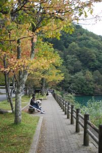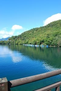 Lake Chuzenji has a circumference of about 25km created by the river being dammed by the Mt. Nantai. It is beautiful in both summer and autumn months. In summer, the trees along the lakeside are be wrapped in bright green (in the mid of May). The colour contrast of the trees and bluish water of Lake Chuzenji paints a perfect picture. In autumn, the reflection of reddish autumn leaves on the water surface is the dreamt canvas of every artist.
